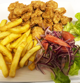 POLLO A LA PIÑA Filete de pollo en trozos, marinado y sazonado, mezclado con piña y el mágico sabor peruano. $8.500